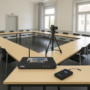 Damit eine Präsenzveranstaltung aufgezeichnet oder gestreamt werden kann, muss der Hörsaal mit der notwendigen Technik ausgestattet sein. Achten Sie bei der Raumauswahl und Raumreservation im KSL darauf, einen podcastfähigen Hörsaal zu wählen oder beantragen sie diesen beim Raumreservationszentrum oder bei den dezentralen Reservationsstellen (siehe Ressourcen). Für Räume ohne feste Infrastruktur steht ein mobiles Set zur Verfügung, das über die Materialausleihe ausgeliehen werden kann.